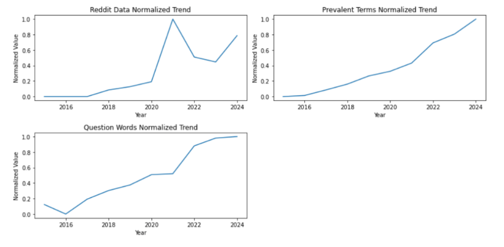 Māori (Austronesian) is relatively unique across endangered languages for the scale of its current revitalization efforts which even has backing from the New Zealand government. To evaluate the effectiveness of the array of different language efforts going on in the country (including language nests, immersion schools, Māori broadcast media, etc.), Kyle undertook a data driven analysis of the presence of the language online, specifically looking at the trajectory of Māori usage on Reddit and Google Trends. He found that searches involving common terms and question words in Māori continue to grow on Google while Reddit activity is generally on the up, albeit with a sharp decline in 2021-2022 (potentially a symptom of general post-COVID dips in online activity).